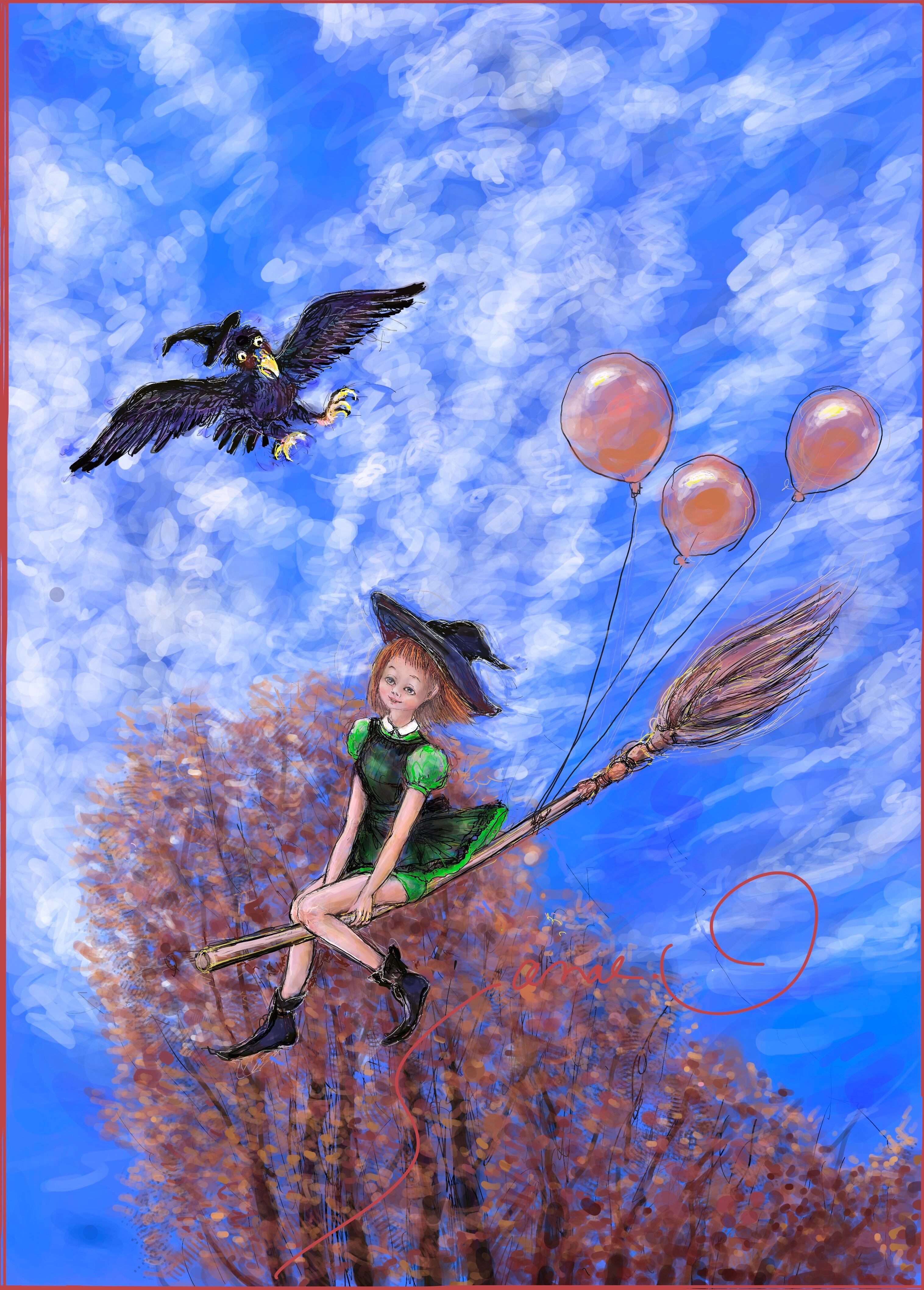 みどりちゃんは秋晴れの空に散歩に行きました。雲と一緒に上昇気流に乗って登って行きます。