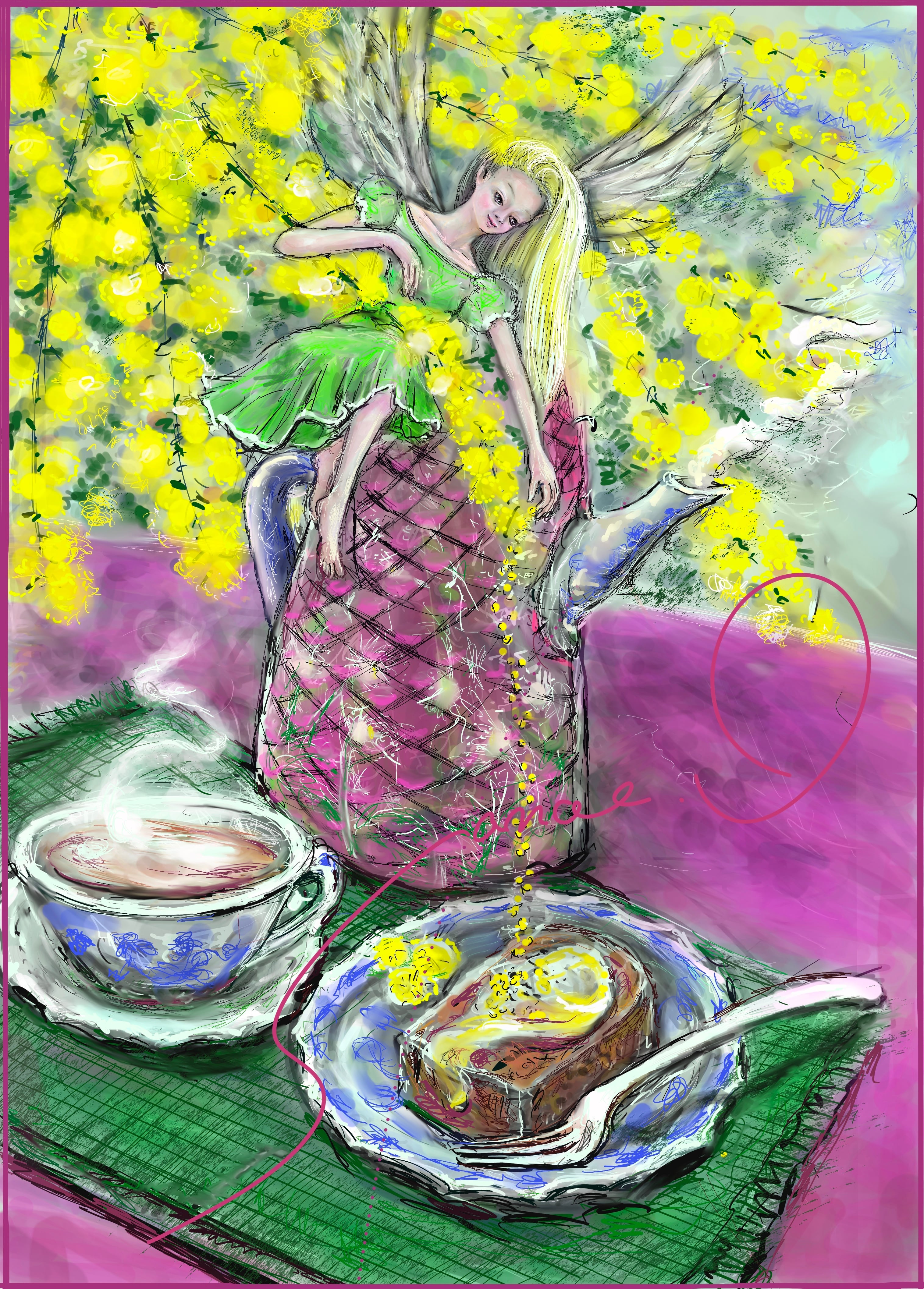 フェアリーがミモザの花粉のトッピングをしてくれました。