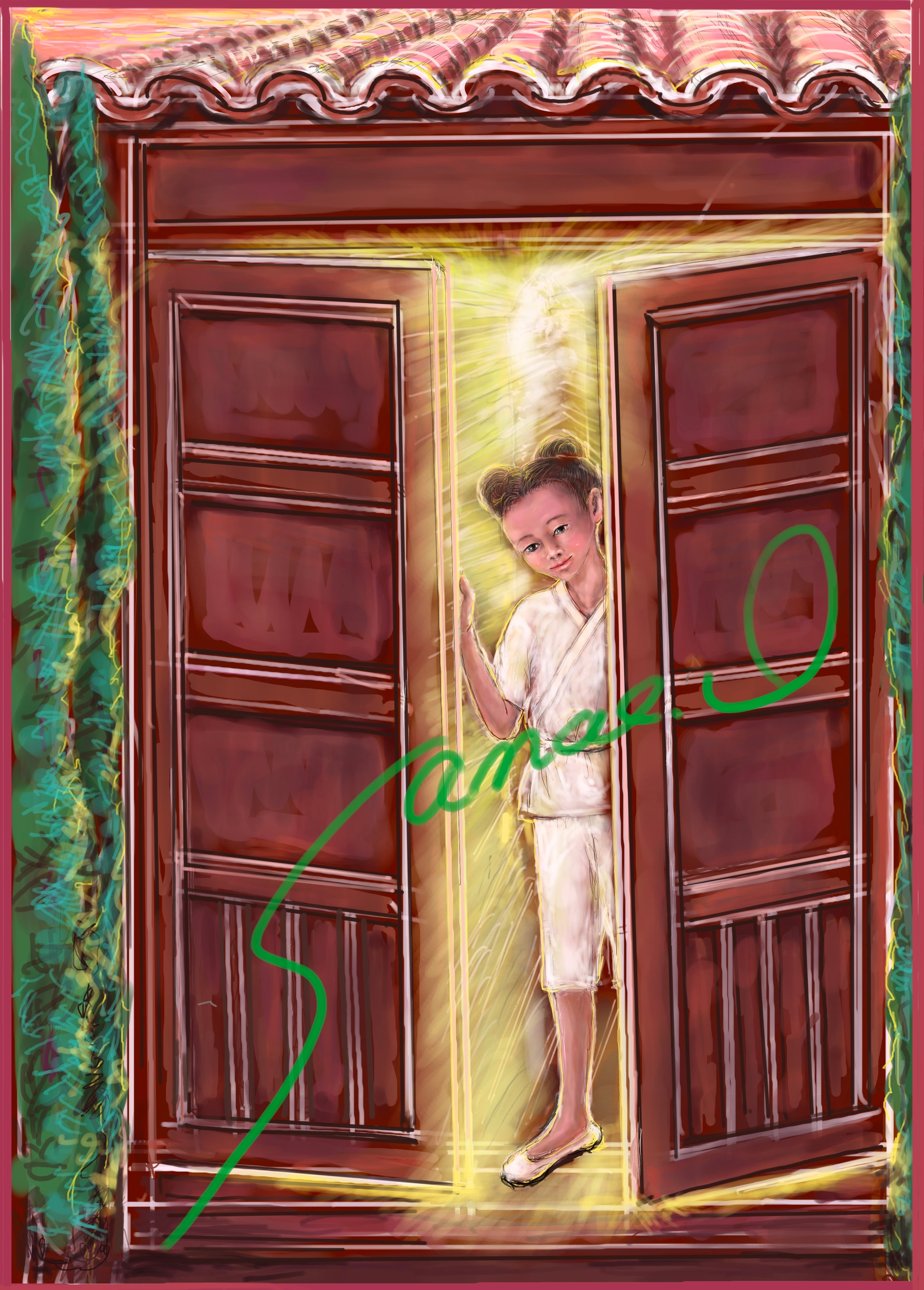 身体も心も疲弊している人が、ドアの戸口に立ちためらいながらノックするとギィーっと扉が開きます。若者が立っていて、どうぞお入りください待っていましたよ。微笑みながら言いました。